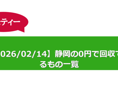 【2026/02/14】静岡の0円で回収できるもの一覧